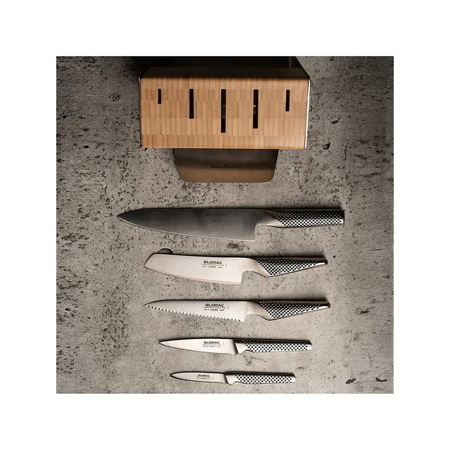 Global Katana 6-Piece Stainless Steel Knives & Block Set